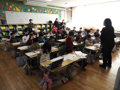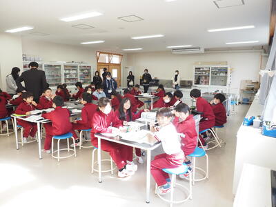 図書室前には、学年ごとの専用ポストを設置しています。中休みや昼休みには図書委員がポストを回収し、宛先の児童がいる学級のポストへ丁寧に配達しています。まるで本校だけの小さな郵便局ができたようで、受け取った児童も嬉しそうに読んでいます。
