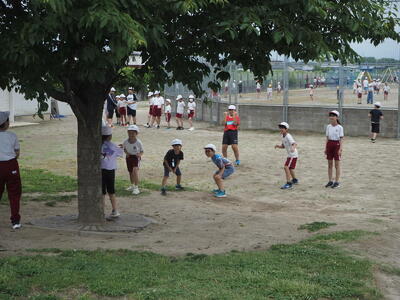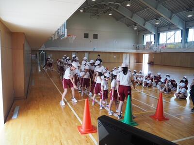 本校では、6月に学年ごとに運動能力テストを実施しています。今日は1年生が「反復横跳び」と「ボール投げ」を実施しました。1年生にとっては初めてのテストであり、6年生がやり方を教えてくれたり、測定を手伝ってくれたりしました。頼もしい6年生の姿に、1年生も安心して取り組むことができました。