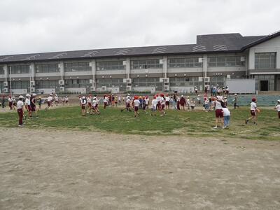中休みに、全校児童による「縦割り班遊び」を校庭で行いました。普段から縦割り班清掃で活動しているグループごとに、6年生が中心となって遊びの内容を考え、当日はリーダーシップを発揮しながら進行してくれました。