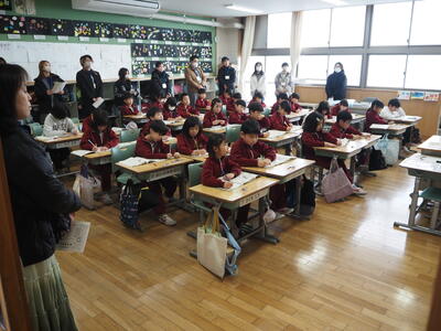 各学級では、生活科や国語の学習のまとめとして発表会を行う姿が見られました。これまでの学びを振り返りながら、自分の考えや調べたことを言葉や表現で伝えようとする子供たちの姿から、この一年間の成長を感じることができました。少し緊張しながらも、一生懸命に発表する様子がとても印象的でした。